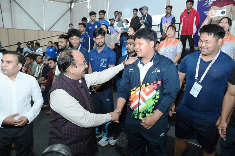रायपुर : उप मुख्यमंत्री तथा खेल एवं युवा कल्याण मंत्री श्री अरुण साव आज रायपुर के पंडित रविशंकर विश्वविद्यालय मैदान पहुंचकर खेलो इंडिया ट्राइबल गेम्स के अंतर्गत आयोजित वेट-लिफ्टिंग स्पर्धा देखने पहुंचे। उन्होंने विभिन्न प्रदेशों से आए खिलाड़ियों से मिलकर उनकी हौसला अफजाई भी की। श्री साव ने आज के वेट-लिफ्टिंग स्पर्धा के विजेताओं को पदक भी वितरित किए। खेल एवं युवा कल्याण विभाग के सचिव श्री यशवंत कुमार भी इस दौरान मौजूद थे।