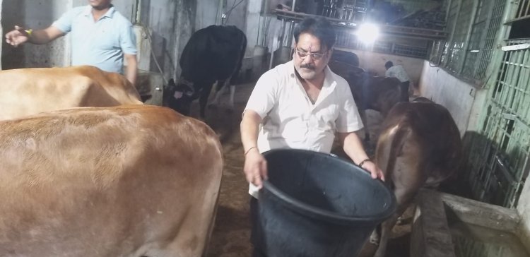 गौ सेवा: नर्मदापारा स्थित कार्यालय की गौशाला में कुबेर राठी, मंजू राठी और समिति सदस्यों ने स्वयं पहुँचकर गौ-माता की सेवा की और उन्हें भोजन खिलाया।